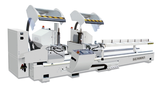 雙頭鋸:能將型材按需要的尺寸和角度裁取,常用截取角度為45°和90°,角度更精確,效率更高。